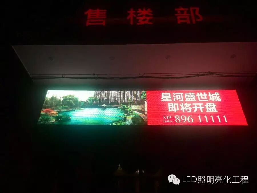 热烈祝贺河北盛景光电-星河盛世销售中心亮化工程调试完成,金碧辉煌的夜景亮化,高清、多彩、迷人的显示屏,展现星河盛世的品质,盛景光电助力星河盛世销售更上一层楼。