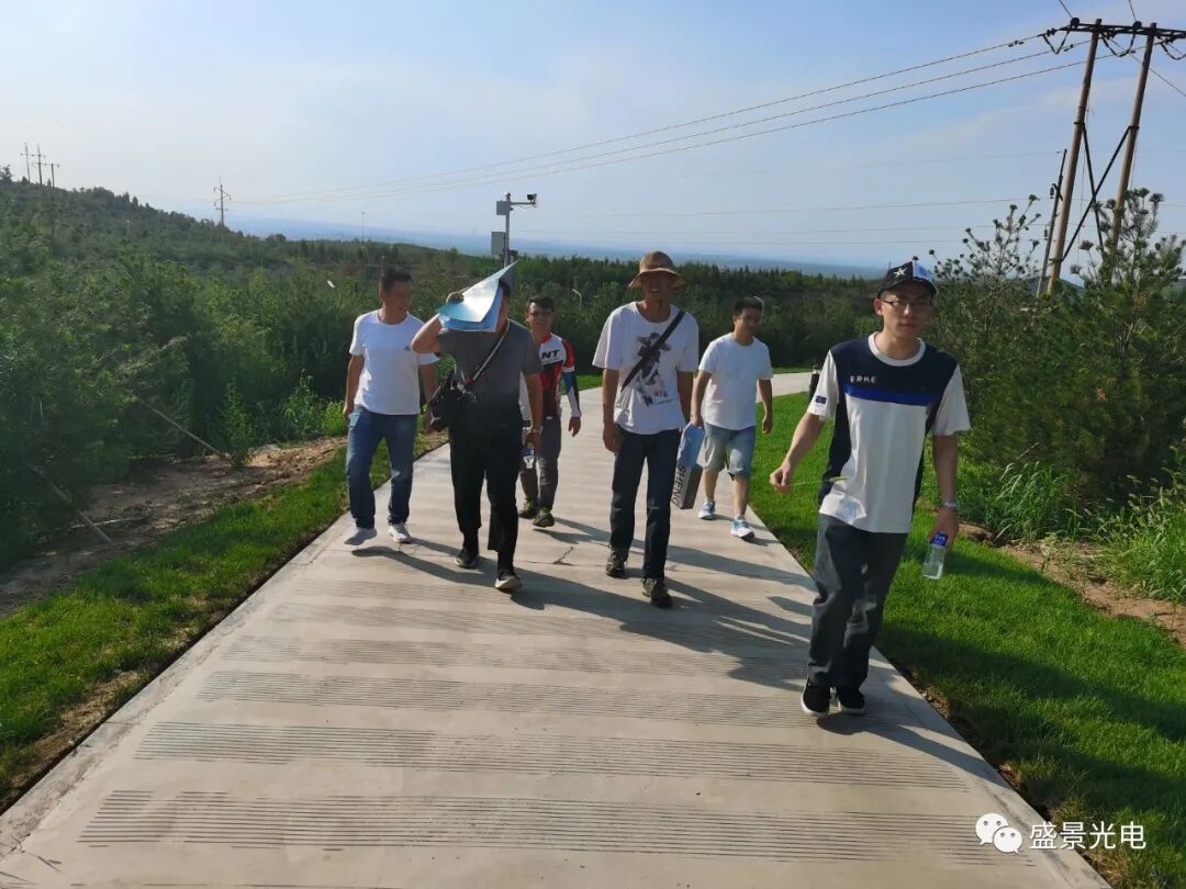 车辆的短程接驳,在烈日拥抱下,爬山沿途勘察,再下山,回到车里继续奔赴下一个勘查区域。车,成为遮蔽阳光,校对图纸的绝佳场所。(ps:盛景光电的设计部同仁仔细端详图纸校对)